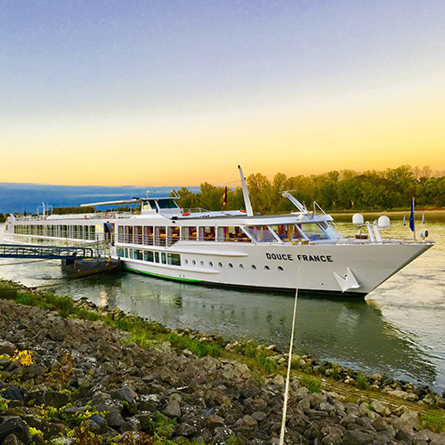 Le MS Douce France navigue sur le Rhin et sur le Danube. À bord, vous pourrez y retrouver plusieurs commodités telles que la climatisation sur l'ensemble du navire, une petite piste de danse, un bar et des chaises longues disponibles sur le grand pont Soleil. Ce bateau dispose de 55 cabines confortables et finement décorées. Ses cabines offrent un excellent point d'observation sur les paysages riverains, chacune des cabines est agrémentée de larges baies vitrées favorisant une luminosité naturelle. Aussi convivial que les cabines du bateau, son restaurant offre un service de qualité et des menus aux saveurs du monde. 5 ancres - Inauguré en 1997 - Rénové en 2017 - Capacité : 107 passagers