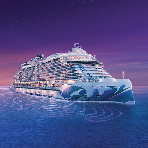 Le Norwegian Viva est le deuxième navire de la classe Prima chez Norwegian Cruise Line. Le navire a été construit à Marghera, en Italie. Ce navire repousse les limites de la croisière conventionnelle, offrant aux passagers plus de grands espaces, un art et un design réfléchis et mettant les voyageurs au centre de leurs préoccupations. Ce navire offrira la plus grande variété de catégories de cabines ainsi qu’une plus grande superficie dans les cabines intérieures, vue mer et avec balcon. Baladez-vous sur la promenade Oceanwalk avec son plancher de verre où vous aurez l'impression de marcher sur l'eau. Le Indulge Food Hall, situé sur le pont 8, offre un choix de 11 cuisines différentes avec un mélange de sièges à l'intérieur et à l'extérieur. Inauguré en 2023 — Capacité : 3250 passagers — Tonnage : 142 500