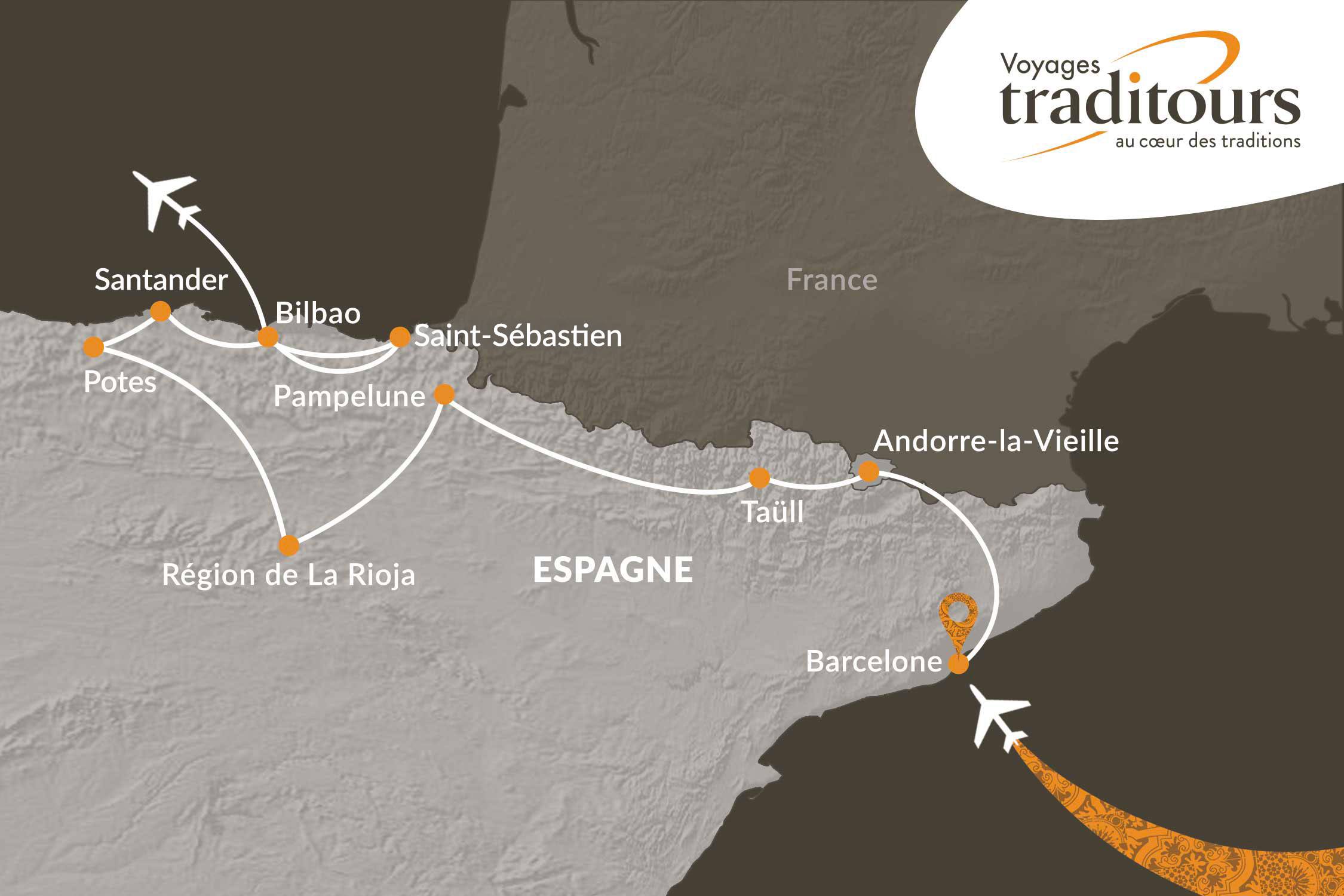 Dès notre arrivée à Barcelone, nous serons accueillis par notre guide national francophone avec qui nous aurons le privilège de découvrir les trésors historiques et naturels de son magnifique pays. Transfert et installation à l’hôtel. Après-midi libre nous permettant de découvrir la ville à notre rythme. En soirée, dans une ambiance toute conviviale, nous préparerons notre souper grâce aux conseils d’un chef catalan. Celui-ci nous révélera les secrets des fameux pintxos, spécialités du pays basque que nous parcourrons bientôt! Retour à l’hôtel et nuit à Barcelone.