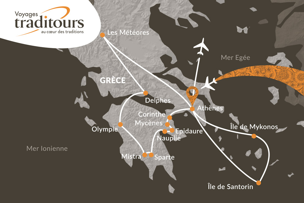 Rencontre avec notre accompagnateur de l’équipe Traditours à l’aéroport de Montréal. Assistance aux formalités d’enregistrement et envol vers Athènes, en Grèce. Repas à bord et nuit dans l’avion.