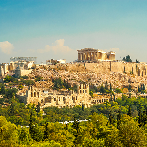 Déjeuner. Ce matin, découverte à pied du magnifique site de l’Acropole. Notre guide nous fera vivre toute l’histoire d’Athènes d’hier à aujourd’hui. Dîner. Temps libre dans le quartier Monastiraki pour en profiter à notre rythme. Retour à l’hôtel. Souper d’au revoir avec musique folklorique grecque. Retour et nuit à Athènes.