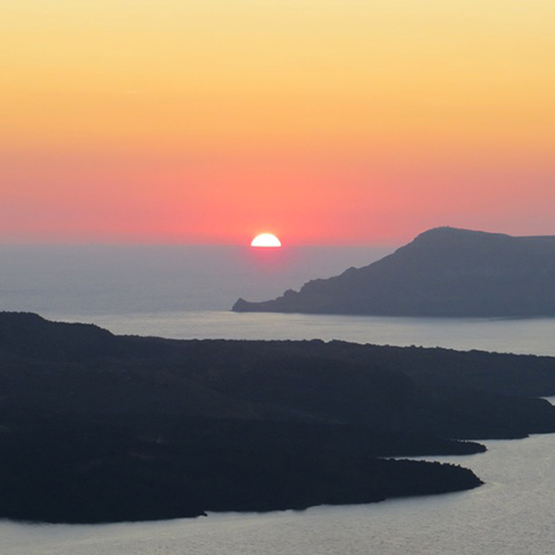 - Coucher de soleil spectaculaire depuis le haut de la falaise du village d’Oia