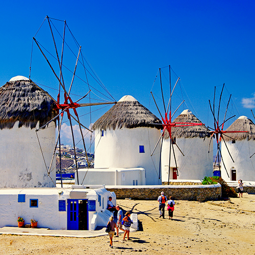 Déjeuner. En matinée, départ en traversier pour la visite du site archéologique de Délos. Selon la mythologie grecque, c’est à cet endroit que seraient nés les dieux Artémis et Apollon. Île inhabitée au large de Mykonos, Délos est un musée à ciel ouvert. Nous serons intrigués par les nombreux vestiges de ce sanctuaire antique. Retour à Mykonos. Dîner au restaurant suivi de temps libre pour découvrir à notre guise les ruelles. En fin d’après-midi, visite guidée à pied du centre-ville en déambulant dans les petites ruelles piétonnières. Nous pourrons aussi admirer les fameuses maisons blanches aux volets bleus, les nombreux moulins à vent et le quartier de la Petite Venise. Souper au restaurant dans le vieux port de la ville de Mykonos. En soirée, nous nous imprégnerons de l’atmosphère unique à cet endroit où, à la nuit tombée, danse et musique nous invitent à prendre part aux festivités. Retour à l’hôtel et nuit à Mykonos.