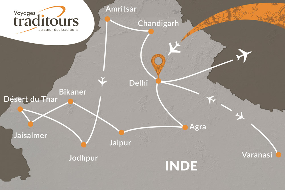 - Les 3 vols intérieurs Amritsar / Jodphur, Delhi / Varanasi & Varanasi / Delhi