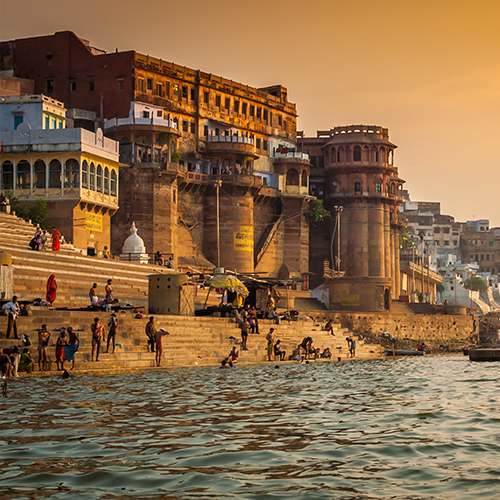 - Au coucher du soleil, nous assisterons à la cérémonie Ganga Aarti (prières collectives) et observerons les lampes à l’huile flottant sur les eaux du Gange à Varanasi
