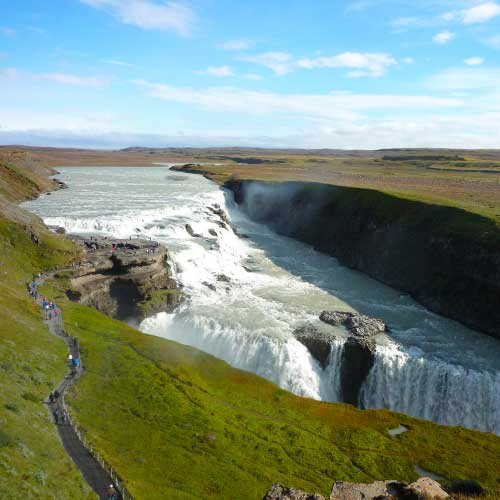 - Découverte de l’impressionnante chute de Gullfoss, se trouvant sur l’une des rivières glaciaires d’Islande dans le Cercle d’or