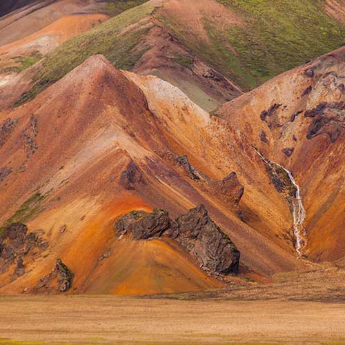 Déjeuner. Ce matin, nous prendrons la route vers les massifs colorés du Landmannalaugar, qui signifie « bains chauds des gens du pays ». Notre randonnée nous mènera à travers des décors surréalistes constitués de montagnes multicolores, de coulées de lave et de fumerolles. Dîner boîte à lunch en cours de randonnée. Poursuite de notre découverte de cette magnifique région volcanique. Nous aurons aussi la possibilité de faire une baignade dans une source naturelle d’eau chaude. Puis, transfert vers Kirkjubæjarklaustur. Arrivée, installation à l’hôtel, souper et nuit dans la région de Kirkjubæjarklaustur.