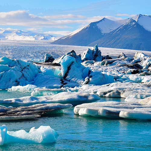 - Une courte randonnée près du lagon Jökulsárlón, où nous pourrons y admirer des icebergs flottant sur les eaux cristallines
