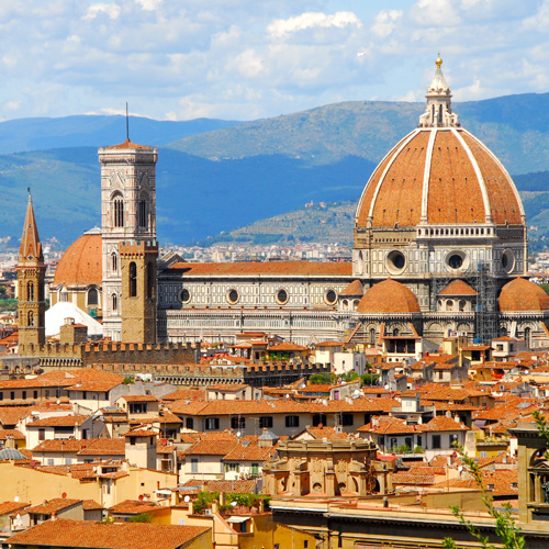 Déjeuner. Ce matin, nous nous rendrons dans le centre-ville de Florence. Visite guidée pour faire connaissance avec cette ville exceptionnelle. Bâtie au bord de l’Arno, Florence, capitale de la Toscane et berceau de la Renaissance italienne, occupe une plaine entourée de collines. Elle est un véritable musée à ciel ouvert. Découverte de la Piazza del Duomo, où le dôme et le baptistère constituent les deux plus beaux joyaux de la ville, de la cathédrale Santa Maria del Fiore, de l’église Santa Croce datant du 13e siècle. Dîner en ville. En après-midi, nous aurons l’occasion d’explorer, à notre guise et selon nos intérêts, toutes les richesses de la ville. Retour à l’hôtel. Souper et nuit dans la région de Florence.