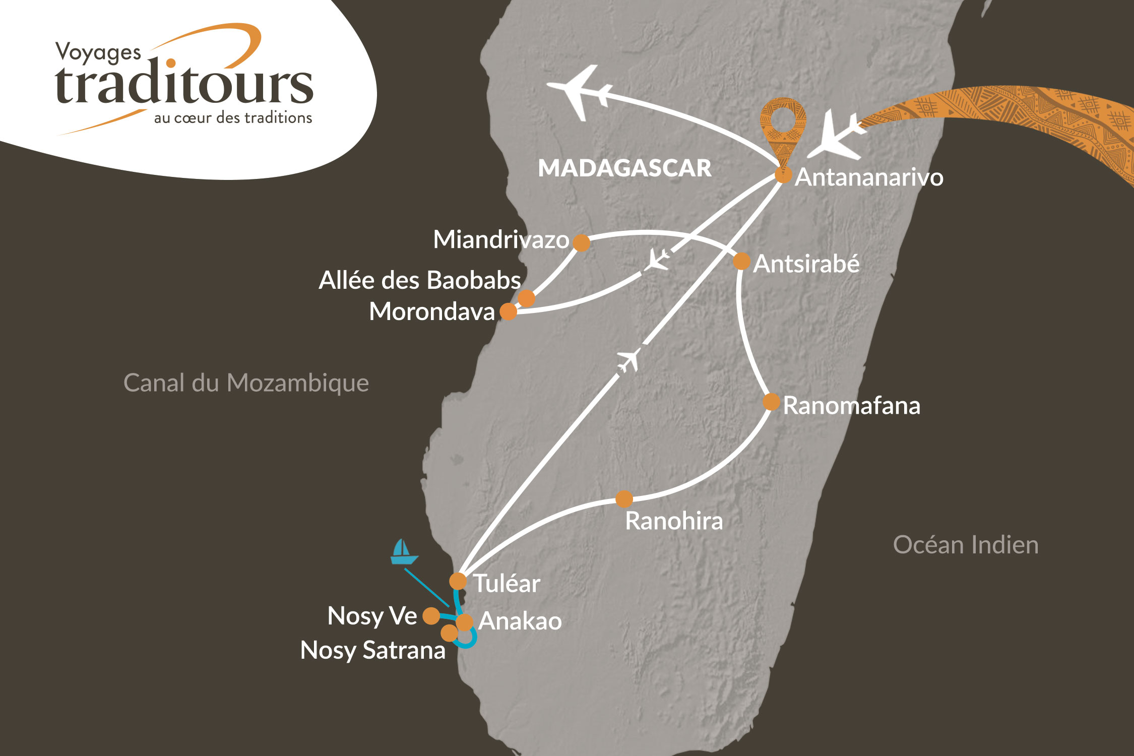 • Les vol intérieurs Antananarivo / Morondava & Toliara / Antananarivo