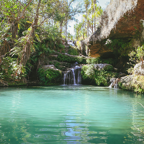 • Baignade revigorante dans les eaux claires des chutes naturelles du Parc National d'Isalo