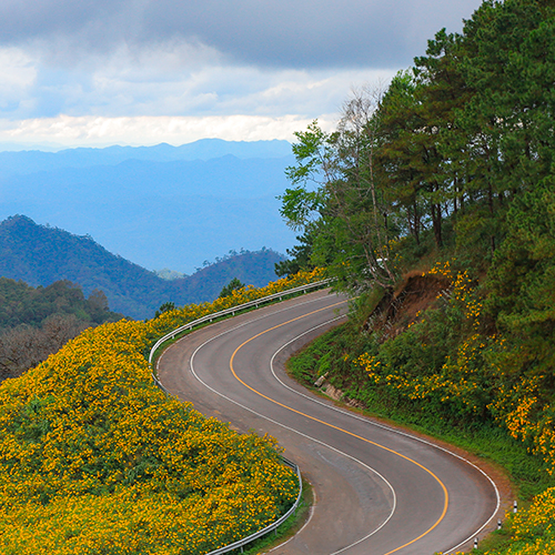 - La célèbre route aux 1 864 virages de Chiang Maï à Mae Hong Son est aussi sinueuse que spectaculaire! Virages en épingles et dénivelés : un parcours absolument magnifique!