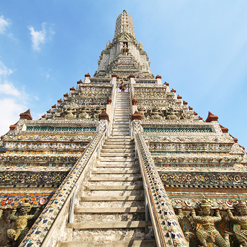 Déjeuner. En avant-midi, nous serons séduits par la splendeur majestueuse du Grand palais, du temple mystérieux du Bouddha d’émeraude et du Wat Pho, abritant le plus grand Bouddha couché, illustration de son accession au nirvana. Puis nous ferons la découverte du métro aérien afin d’apercevoir la ville d’un angle différent. Diner. Ensuite, nous assisterons à un spectacle de danse Khon issu de la grande classe thaïlandaise. Le khon, théâtre masqué et dansé en Thaïlande, est un art du spectacle qui associe des éléments musicaux, de gracieux mouvements de danse, d’interprétations vocales ainsi que des costumes étincelants. Cette danse dramatique masquée unique en Thaïlande, a été déclaré par l'UNESCO comme patrimoine culturel immatériel de l'humanité. Retour à l’hôtel et temps libre. En soirée, souper-croisière sur le fleuve Chao Phraya afin de profiter de la ville illuminée. Retour et nuit à l’hôtel.