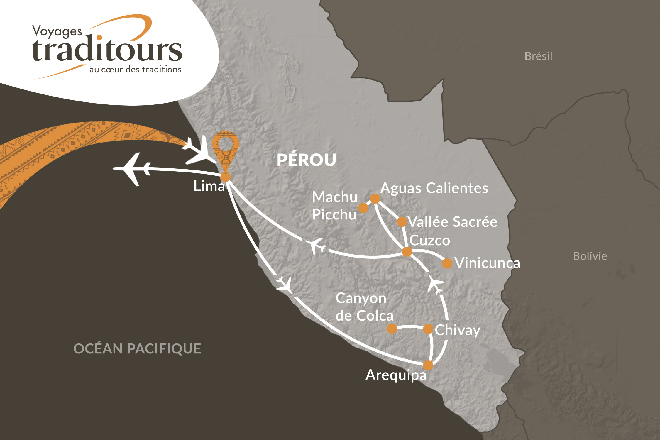 - Les vols intérieurs Lima / Arequipa, Arequipa / Cuzco & Cuzco / Lima