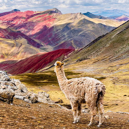 Aux premières lueurs de l’aube, départ pour une aventure inoubliable vers la célèbre montagne Vinicunca, aussi appelée la montagne Arc-en-Ciel. Autrefois route marchande des voyageurs quechuas, ce site enchanteur dévoile des paysages saisissants aux mille couleurs. Premier arrêt à Accopata pour un déjeuner revigorant, avant de poursuivre sur une piste sinueuse jusqu’au secteur de Pitumarca, point de départ de la randonnée. Dès les premiers pas, nous serons entourés par des sommets majestueux, entre roche et neige, offrant un panorama spectaculaire. L’ascension sur un sentier andin nous mène au sommet, où se dévoile un spectacle unique : des strates de couleurs vives, façonnées par des minéraux anciens. Depuis ce belvédère naturel, la vue s’étend jusqu’au géant Ausangate, sommet sacré de la région de Cuzco. Par temps clair, la Vallée Rouge se dessine à l’horizon, ajoutant encore à la magie du lieu. Après un dernier regard sur ce chef-d’œuvre naturel, descente en direction de l’autocar pour reprendre la route vers une pause-dîner bien méritée. Retour, souper et nuit à Cuzco.