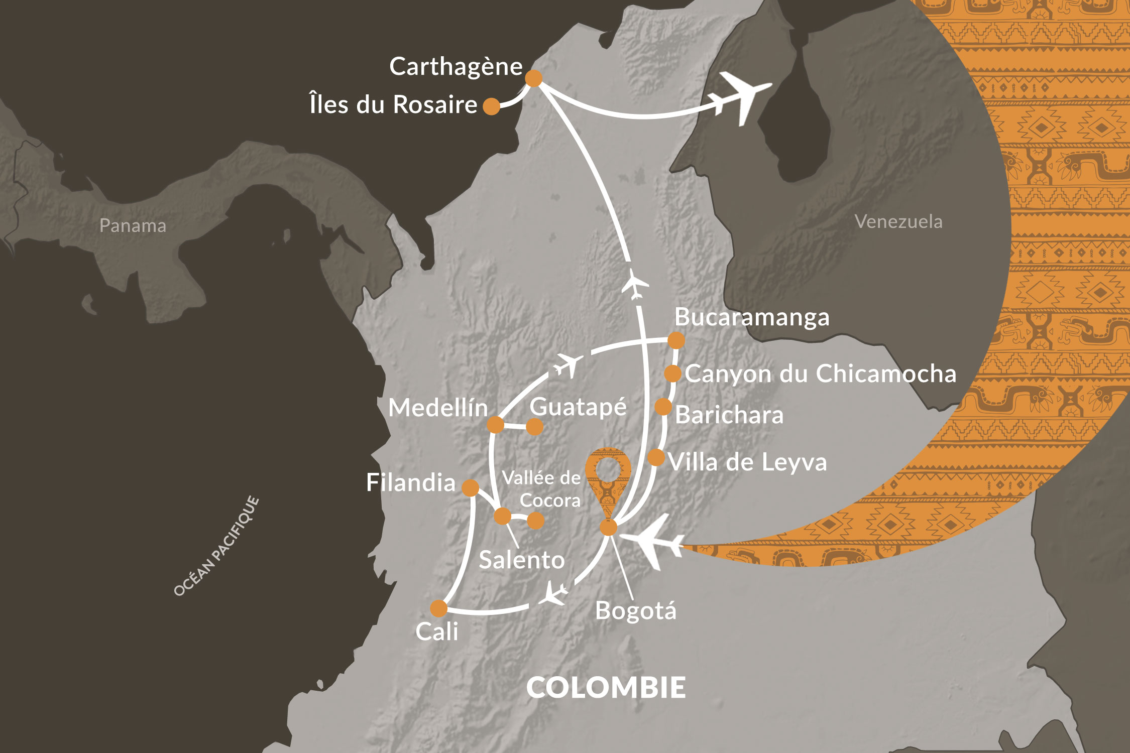 - Les 3 vols intérieurs : Bogotá / Cali, Medellín / Bucaramanga et Bogotá / Carthagène