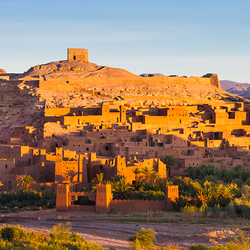 Déjeuner. Départ en direction du village voisin pour la visite d’un joyau de l’architecture marocaine, le ksar d’Aït Ben Haddou. Classé au patrimoine mondial de l’UNESCO, ce village est apparu dans plusieurs films, dont Lawrence of Arabia et Gladiator. Départ en direction de Taliouine, réputée pour la culture du safran. Arrivée, dîner et rencontre avec un producteur local de safran. Poursuite de notre route en direction d’Agadir. Nous quitterons les plateaux et contreforts des monts Atlas puis rejoindrons la côte atlantique, où nous pourrons aussi admirer le paysage vallonné avec ses plaines recouvertes d’arganiers. Arrivée, installation, souper et nuit à l’hôtel à Agadir.