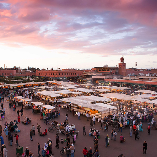 Déjeuner. Départ pour la visite des jardins de Majorelle où la végétation luxuriante et exotique éveillera nos sens. Poursuite par un cours de cuisine alliant à la fois l’apprentissage culinaire et la découverte culturelle authentique. Nous y préparerons un menu traditionnel marocain dont le plat principal consistera en un délicieux tajine, que nous dégusterons pour dîner. Après-midi libre afin de profiter de la magnifique ville de Marrakech à notre guise. En soirée, découverte de l’ambiance unique de la place Jemaa El Fna, suivie du souper d’au revoir dans un cadre majestueux. Retour à l’hôtel et nuit à Marrakech.