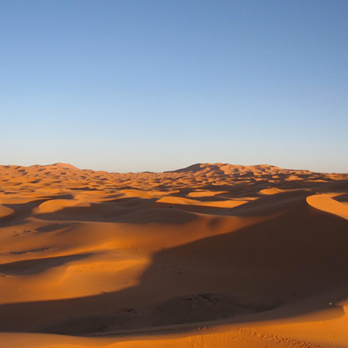 Déjeuner. Départ vers la chaîne de montagnes du Moyen Atlas et découverte d’Ifrane, ville qui fut fortement influencée par le protectorat français au Maroc. Avec ses allures de village alpin, elle est surnommée la « Suisse marocaine ». Nous passerons à travers la forêt de cèdres du Moyen Atlas. Considérés comme de véritables monuments, les cèdres marocains peuvent atteindre une hauteur de 50 m et certains spécimens sont âgés de plusieurs centaines d’années. Dîner et poursuite par la route traversant la vallée du Ziz. En chemin, découverte du barrage Hassan II et arrêt à Erfoud où nous visiterons un atelier de marbre fossilisé. Nous rejoindrons ensuite Merzouga via des pistes de terre battue. Installation à l’hôtel et souper. Nuit à Merzouga.