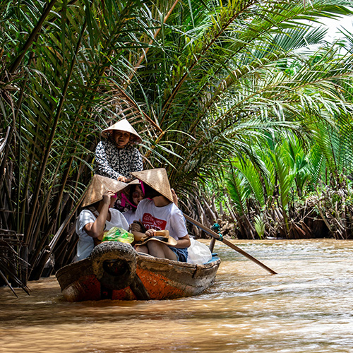 - Excursion en bateau dans le delta du Mékong à la découverte de la région, au fil des canaux et des arroyos