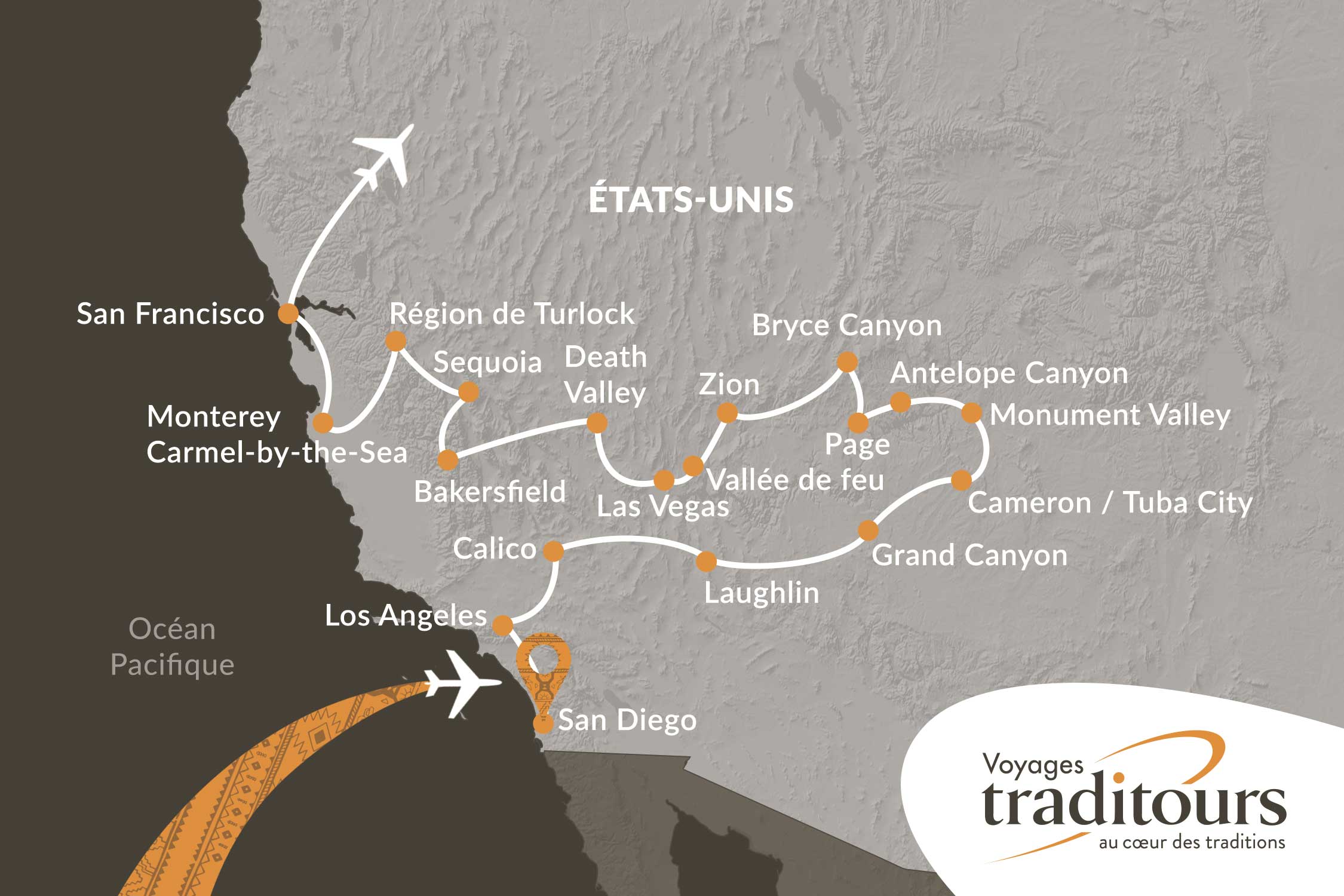 Rencontre avec notre accompagnateur de l’équipe Traditours à l’aéroport de Montréal. Assistance aux formalités d’enregistrement et envol vers San Diego, aux États-Unis. Arrivée et accueil par notre guide national francophone. Transfert et installation à l’hôtel. Nuit à San Diego.