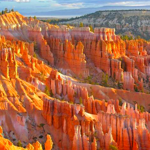 Déjeuner. Route en direction de Bryce Canyon. Arrivée et dîner. Visite du parc national de Bryce Canyon, considéré comme l'un des plus beaux parcs naturels américains. Un coup de cœur garanti! Nous serons étonnés par cette série d’amphithéâtres remplis de pointes et de pinacles, de clochers et de flèches, de falaises et de crevasses et de formations étranges appelées hoodoos. Une légende raconte que ces derniers sont en fait les représentants d’un peuple ancien transformés en pierre. Ici, la nature a réalisé un pur chef-d'œuvre! Des arrêts panoramiques nous permettront de marcher sur les hauts flancs du canyon offrant des vues à couper le souffle! Installation à l’hôtel. Souper. Nuit dans la région de Bryce Canyon.