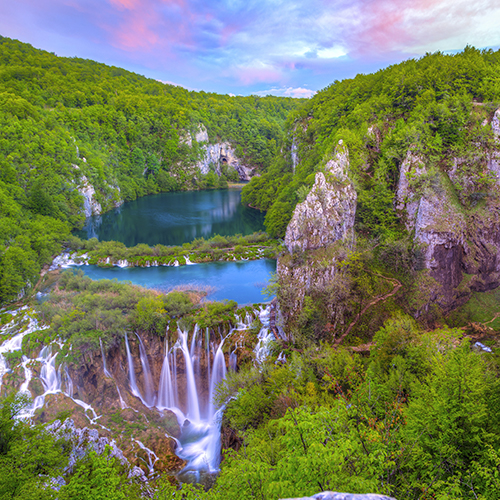 - Le parc national des lacs de Plitvice et ses nombreuses cavernes, chutes d'eau et lacs turquoise