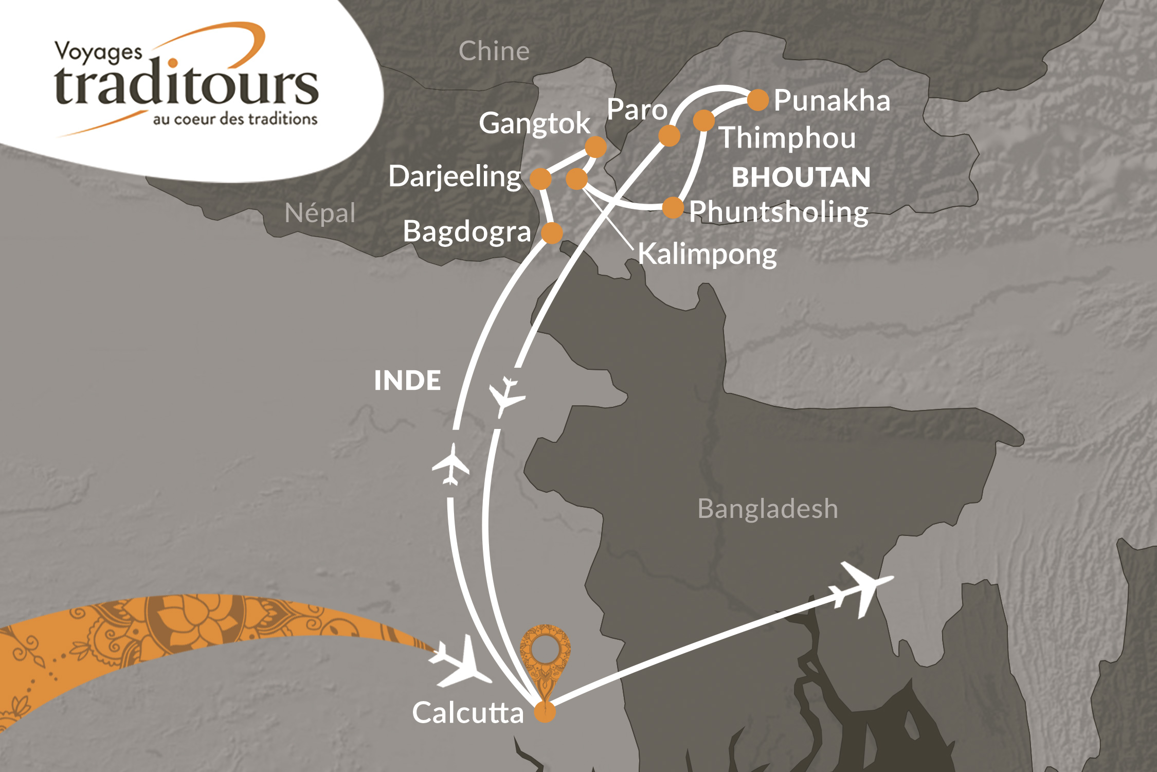 - Les 2 vols intérieurs Calcutta / Bagdogra & Paro / Calcutta