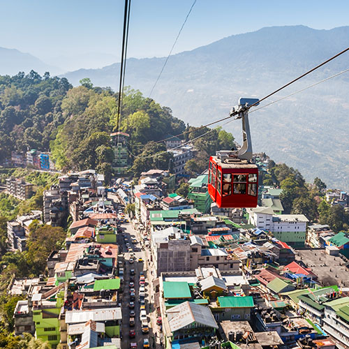 Route vers Gangtok, ancienne capitale du royaume himalayen du Sikkim, nichée à flanc de montagne. En chemin, nous pourrons admirer des paysages spectaculaires, entre vallées verdoyantes, forêts de rhododendrons et hauts sommets. À notre arrivée, nous prendrons le temps de dîner avant de poursuivre notre découverte. Nous emprunterons ensuite le téléphérique pour une ascension tout en douceur, qui nous offrira une vue panoramique à couper le souffle sur la ville et les collines environnantes. Enfin, nous flânerons parmi les étals animés du marché local, où se mêlent couleurs, épices et artisanat, dans une ambiance vibrante. Installation à l’hôtel. Souper et nuit à Gangtok.