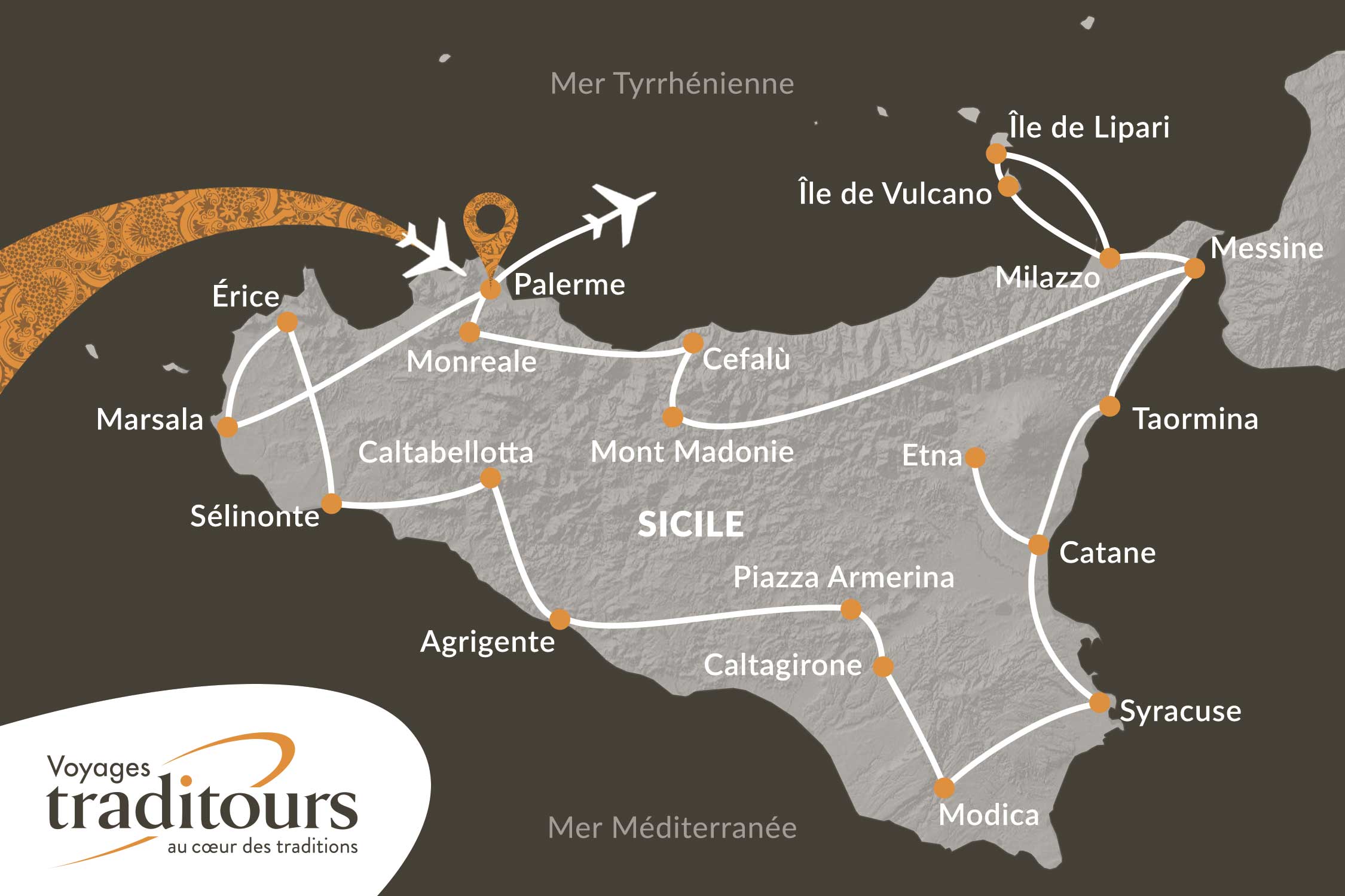 Rencontre avec notre accompagnateur de l'équipe Traditours à l'aéroport de Montréal. Assistance aux formalités d'enregistrement et envol à destination de Palerme, en Sicile. Repas et nuit dans l’avion.