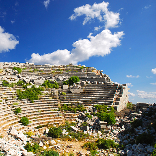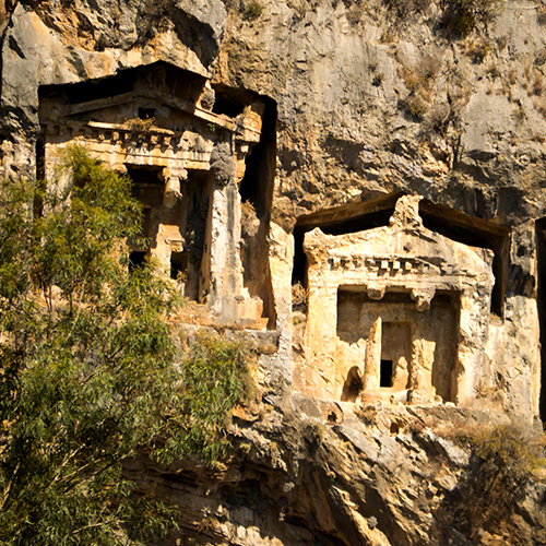 - Visite des ruines de Caunos, avec son théâtre et son acropole; vue sur des tombeaux sculptés à même le rocher