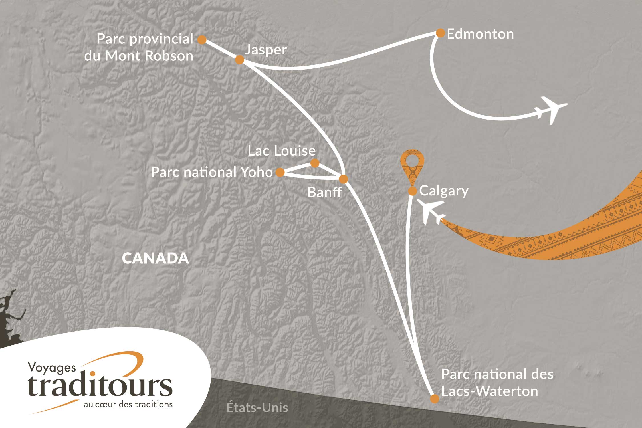 Rencontre avec notre accompagnateur de l’équipe Traditours à l’aéroport de Montréal. Assistance aux formalités d’enregistrement et envol à destination de Calgary. Arrivée et accueil par notre guide national francophone qui nous fera découvrir les plus beaux attraits de sa région à travers des randonnées pédestres sélectionnées pour nous. Puis, tour d'orientation de la ville, capitale économique de l’Alberta. C’est une cité à la fois jeune et ancienne, qui se situe à la pointe de la technologie. Dîner libre. Transfert, installation, souper et nuit à l’hôtel à Calgary.